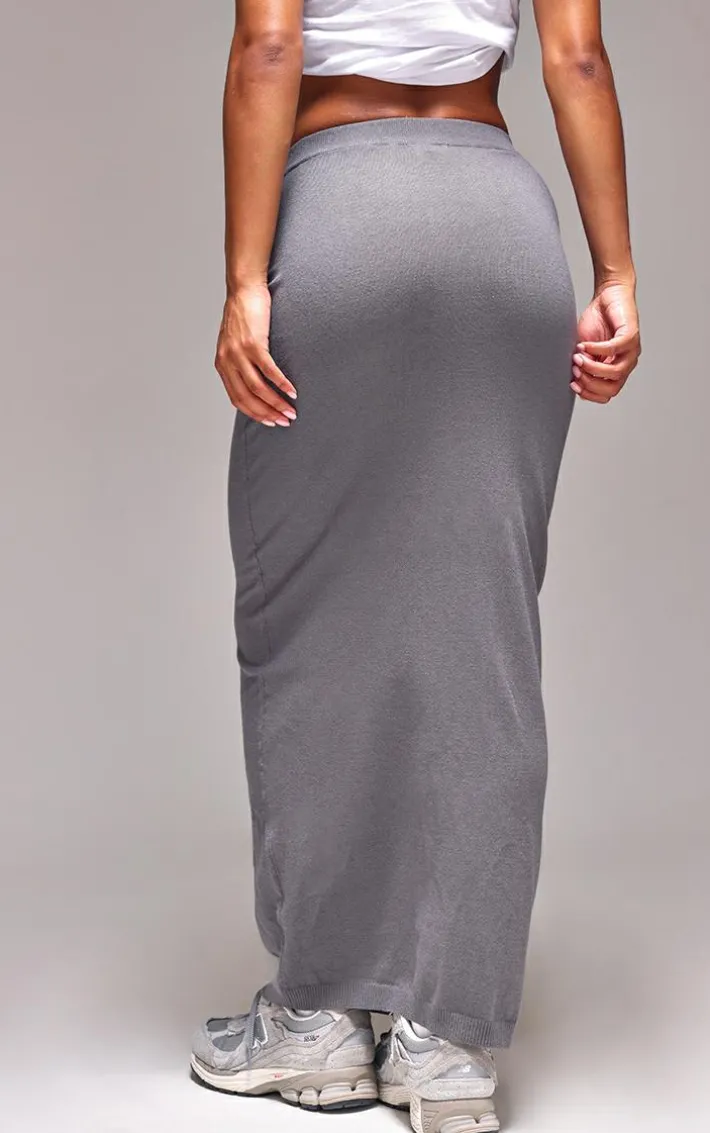 This ash grey basic fine knit maxi skirt is sure to be a staple in your new season wardrobe. Brought to you in an ash grey fine knit material with a flattering maxi fit, what more could you want? Style this maxi skirt with a white tee and sneakers for an effortless everyday look you will be reaching for again and again.