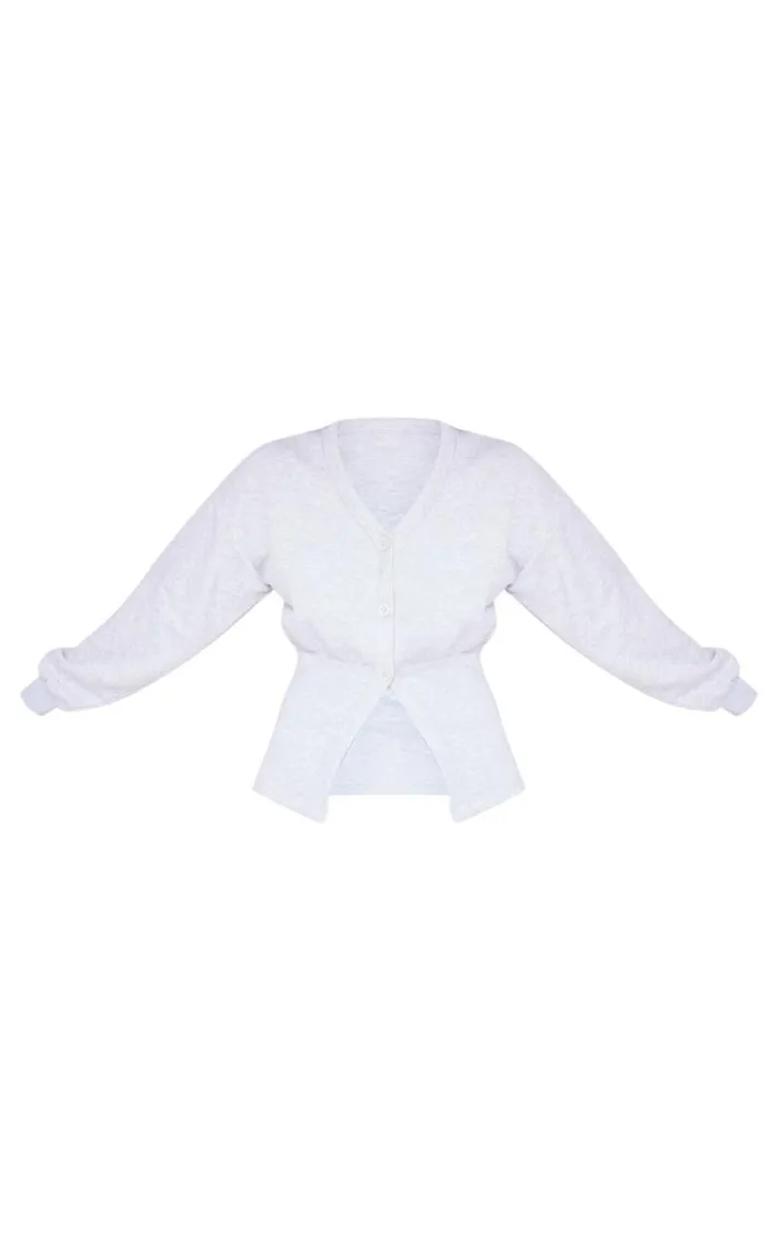 See the new season in with this ash grey fitted waist button front sweatshirt. Made with an essential ash grey hue, fitted waist design and button-down front, you need this sweatshirt in your wardrobe. Put together the cosiest look with a pleated skirt, faux leather loafers and a mini bag.