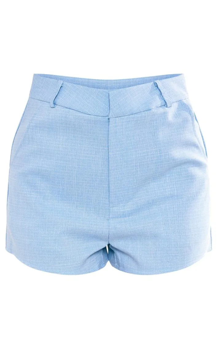 Give your weekend wardrobe a luxe upgrade with these baby blue linen look tailored high waisted shorts, we’re seriously obsessed. These shorts feature a baby blue linen look material with a high waisted design and a tailored style. Pair with the matching vest, strappy heels and your fave accessories for a dreamy date night look.