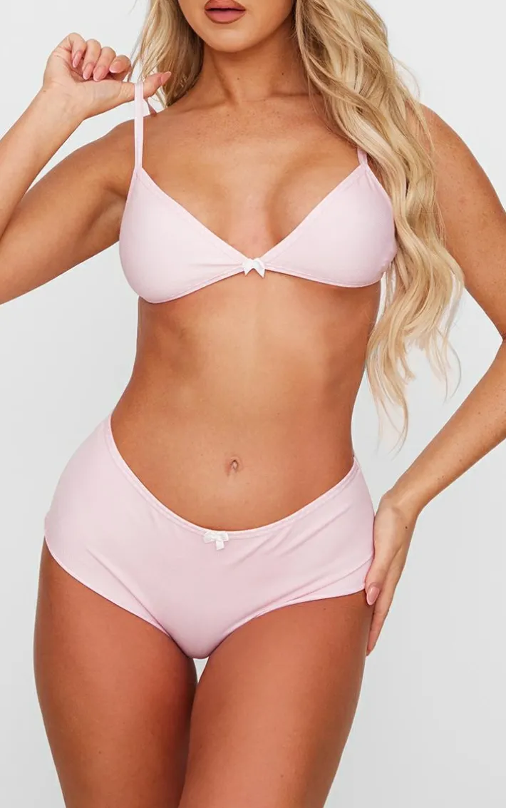 It’s official, we’re obsessed with these baby pink bow detail panties. Brought to you in a baby pink hue material with a bow detail, these panties are at the top of our wish list. Style with the matching bra under your fave outfit of the day for a dreamy finish to earn you all the compliments.