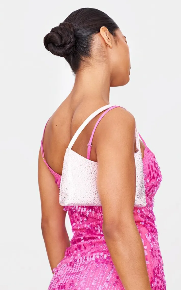Add some luxe vibes to your outfit with this baby pink diamante shoulder bag. Brought to you in a baby pink material with a diamante design, you are sure to feel chic with this shoulder bag. Style with your go-to look to make a statement this season and beyond.