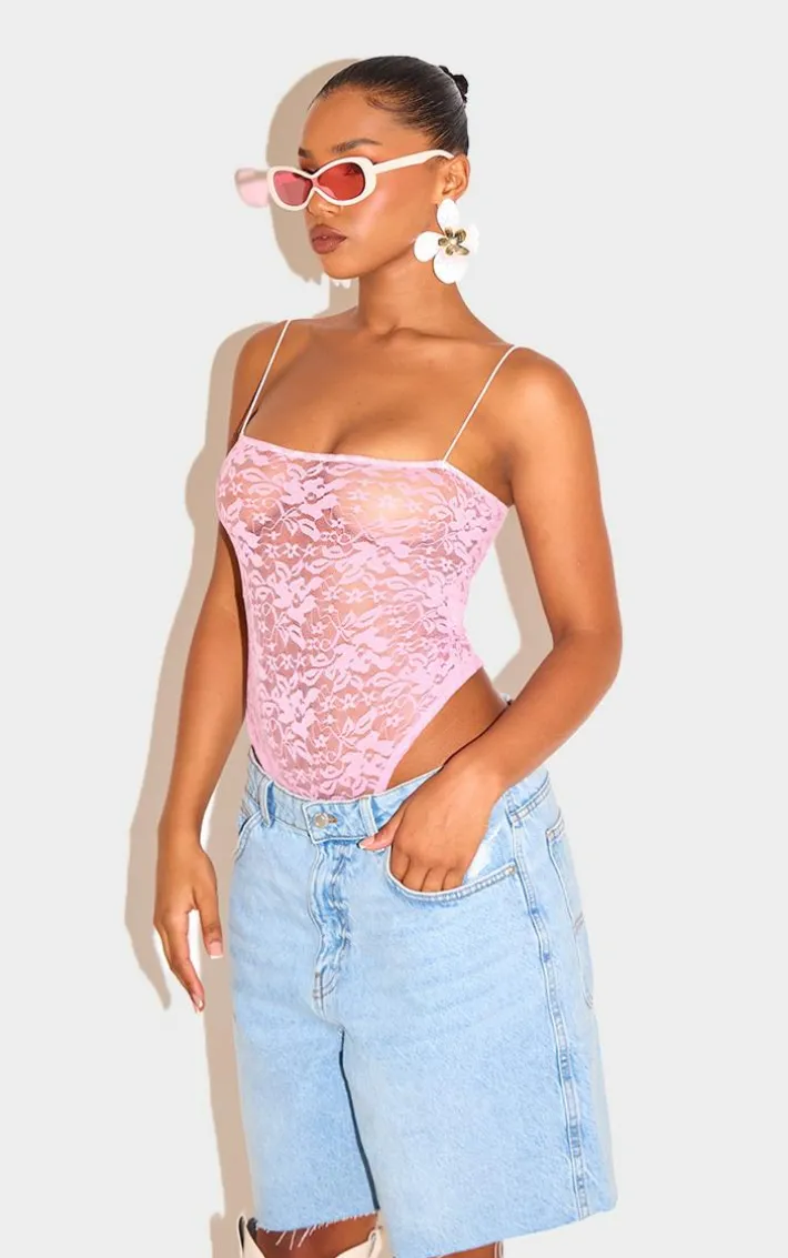 Bring all the luxe lace feels to your new season wardrobe with this baby pink lace spaghetti strap bodysuit. Made from a baby pink hue lace material with spaghetti straps and a flattering fit, how can you resist? Style this lace bodysuit with long shorts, accessories and cowboy boots for a look that will really make a statement this weekend.