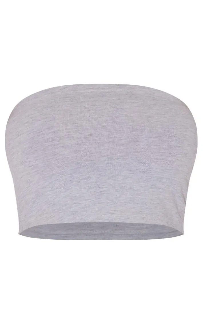 Switch up your wardrobe basics collection with this basic grey marl cotton blend bandeau crop top. It is made using a grey marl cotton blend material with a bandeau neckline and a cropped length, we are obsessed. Wear this with blue jeans, sneakers and your staple accessories for the ultimate casual but cool combo.