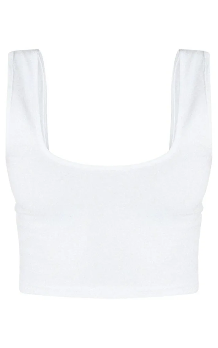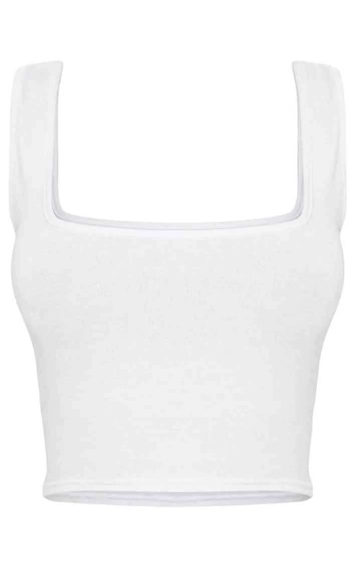Make this vest top an Basic for your wardrobe. Featuring a White Cotton Blend fabric with a square neckline and a cropped fit, team this with a midi skirt and fresh kicks for the ultimate chill day look.