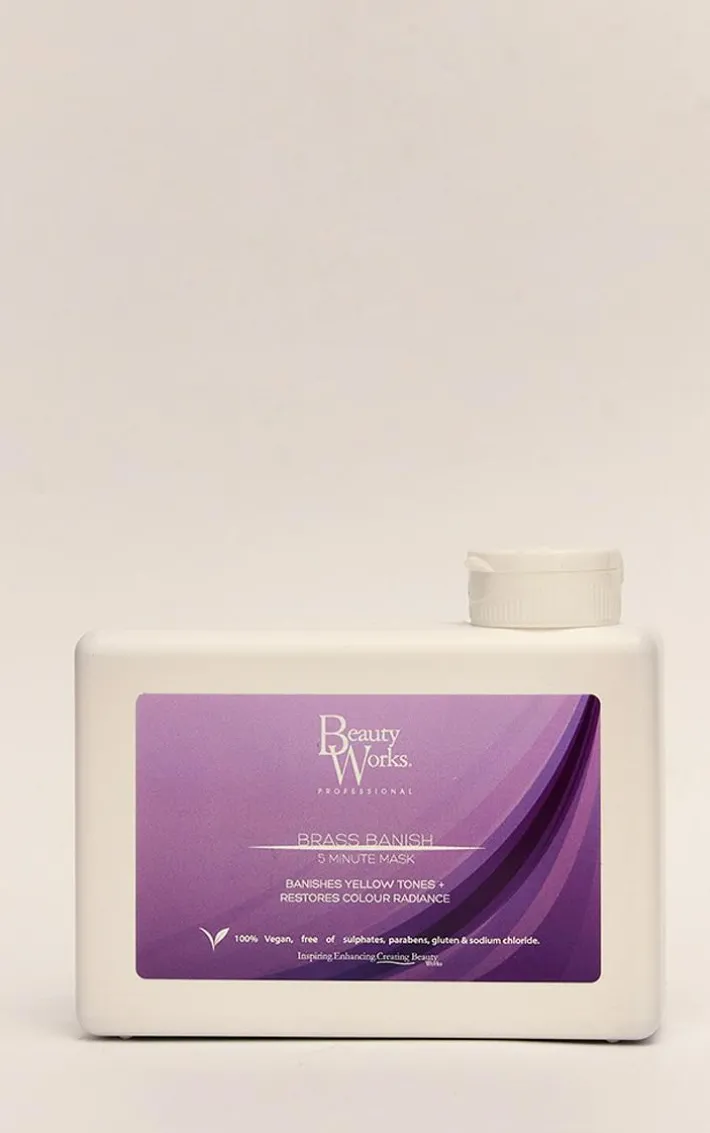 Combat brass tones with our Brass Banish 5 Minute Mask. Soak ends to mid shafts of hair and extensions to neutralise warm tones. Formulated with special violet pigment that neutralises undesired yellow tones, leaving hair soft, shiny and silky.