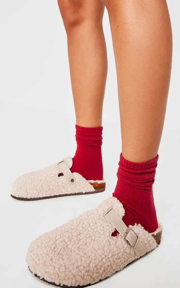 This beige borg round toe buckle mule clogs are the perfect addition to your seasonal collection. Brought to you in a versatile beige hue, with a cosy borg material, round toe design and buckle detail, reach for these on all your nights in and beyond. Pair with some statement socks for a look that won’t go unnoticed.