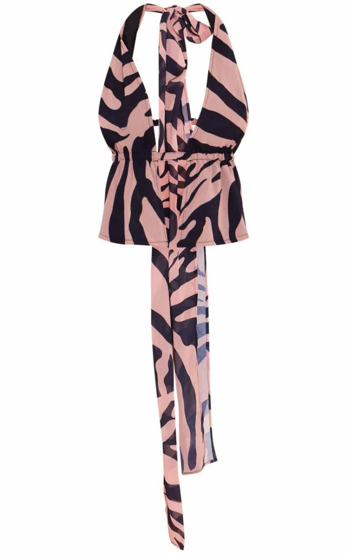 Add some fierce animal prints into your new season wardrobe with this beige chiffon zebra plunge backless long top. Brought to you in a beige chiffon material with a zebra print, a backless design and a plunging neckline, how can you resist? Style this long top with capri’s, heels and statement accessories for a look that is guaranteed to steal all the stares.