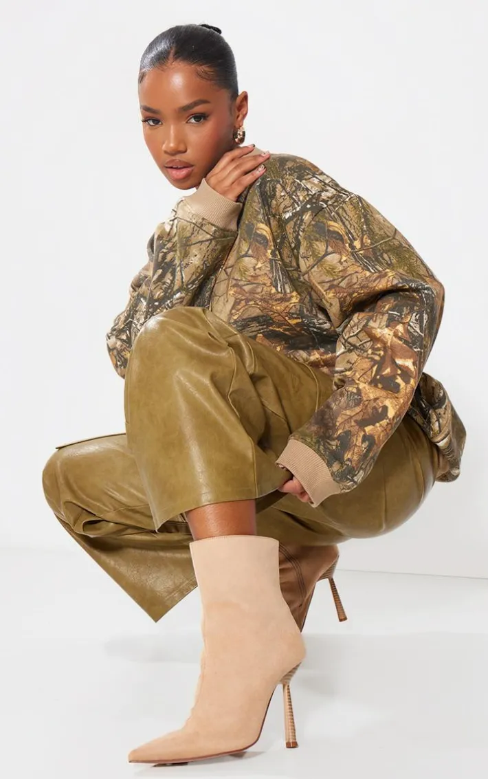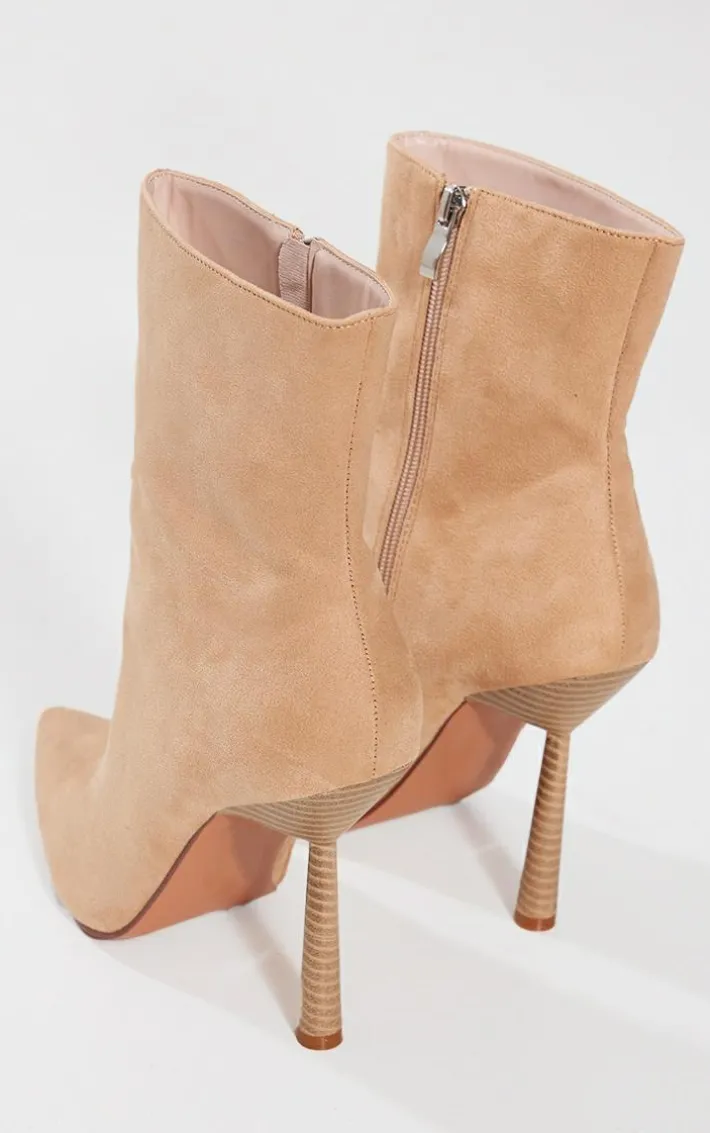Step up your style game this season with these beige faux suede point-toe sock heeled ankle boots. Made from a beige faux suede material with a pointed-toe design and stiletto heel, how could you say no? Whether you’re meeting upor someone special, these ankle boots are sure to be your go-to.