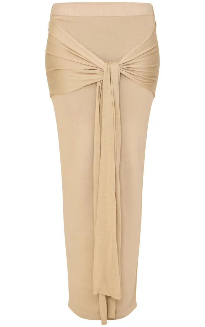 Make styling easy with this beige fine knit drape tie maxi skirt. Brought to you in a deep taupe hue fine knit material with a drape tie design, this maxi skirt is a must have. Style with a chocolate hue top, slip on heels and simple accessories for a classy look we know will get you noticed.