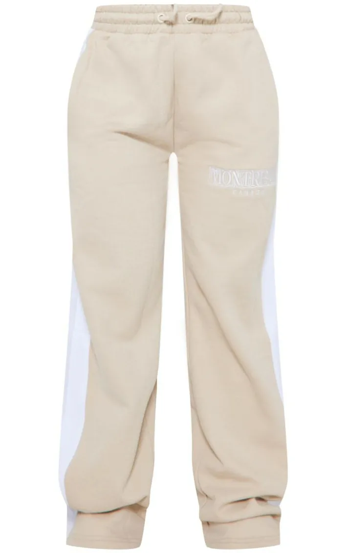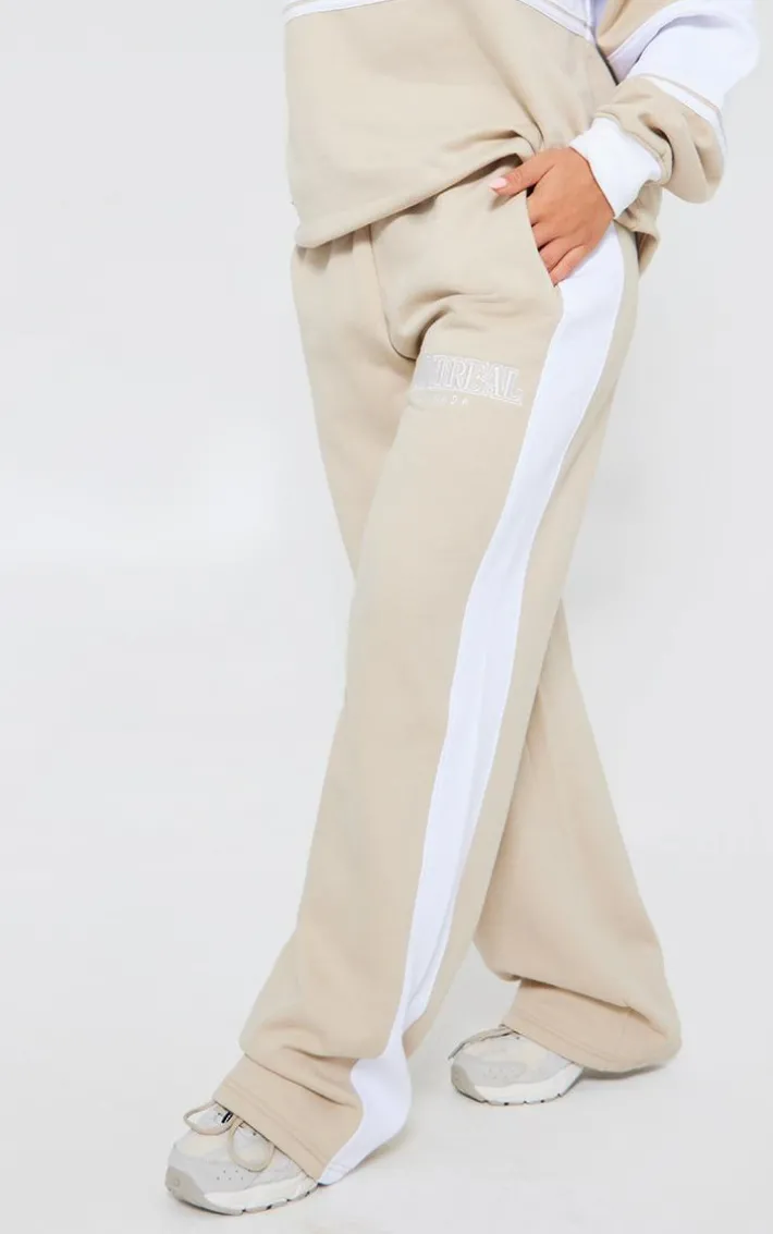 We’re all about neutral hues this season and this beige Montreal embroidered panelled wide leg sweatpants will tick all the boxes on those off-duty days and beyond. With a beige hue material, an embroidered ‘Montreal’ design and a wide leg fit, these sweatpants just went straight to the top of your hit list. Style these wide leg sweatpants with the matching top, chunky sneakers and your fave accessories to elevate the look further.