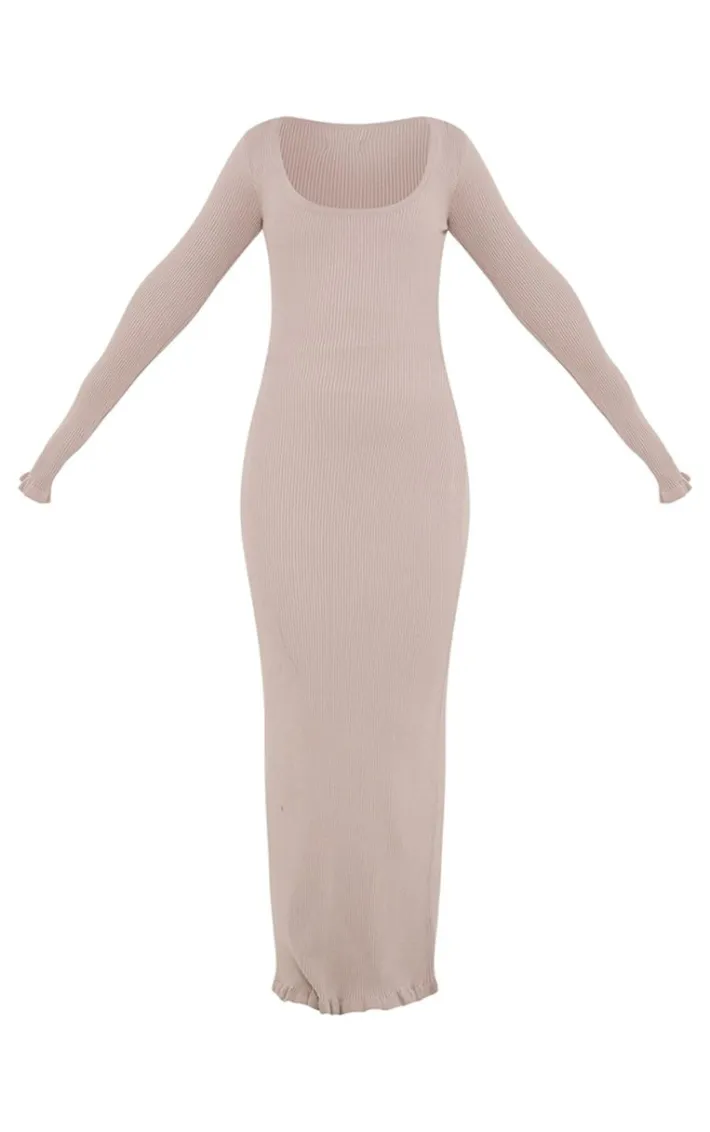 Turn heads for all the right reasons with this beige rib knit piquet hem maxi dress. Brought to you in a beige rib knit material that is sure to amp up your neutral collection instantly. This maxi dress has a piquet hem bringing a touch of luxe like no other. Team this maxi dress with simple accessories and a pair of ballet flats for a look that will steal all the stares.