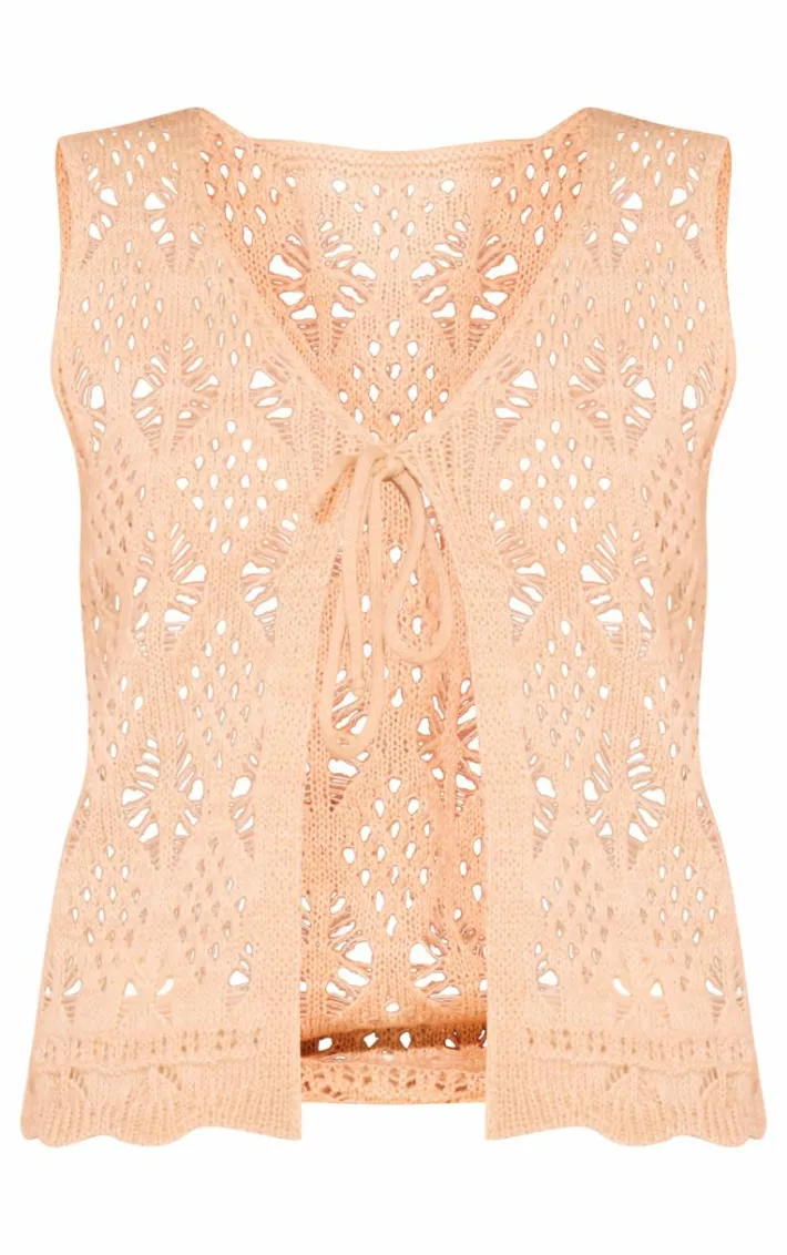 This beige soft crochet knit tie front vest is here to banish any of your what to wear dilemmas. Brought to you in a beige soft knit material with a crochet design, we can’t get enough. From start to finish this tie front vest will have you looking totally on-trend. For a next-level look simply style with your fave shorts and some slip on sandals. It’s a yes from us.