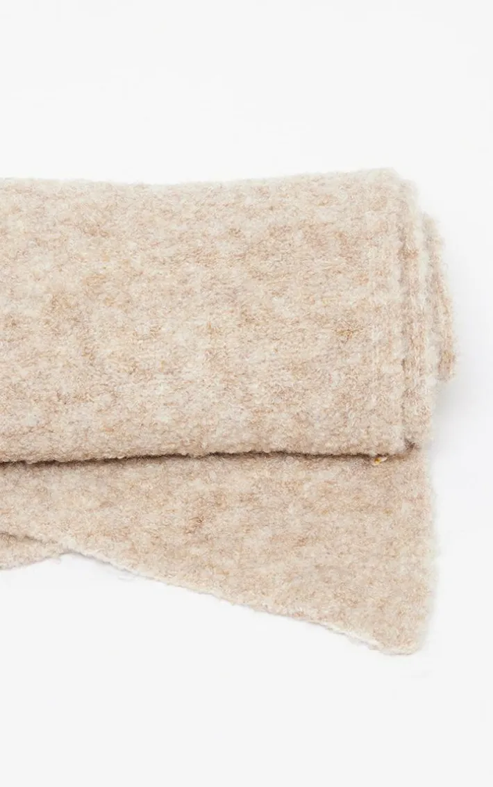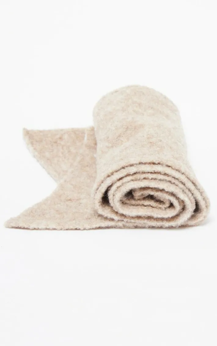 Amp up your cold weather wardrobe with this scarf. Featuring a beige soft ribbed knit material with a relaxed design, we’re in love. Pair with your outfit of the day to earn all the style points.