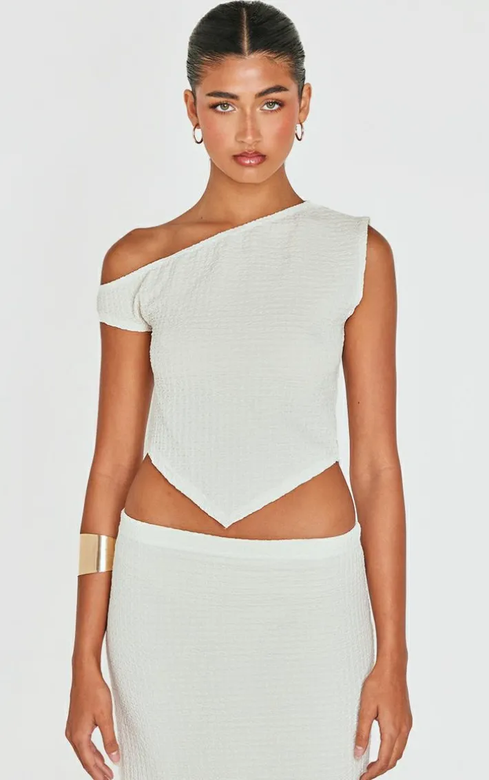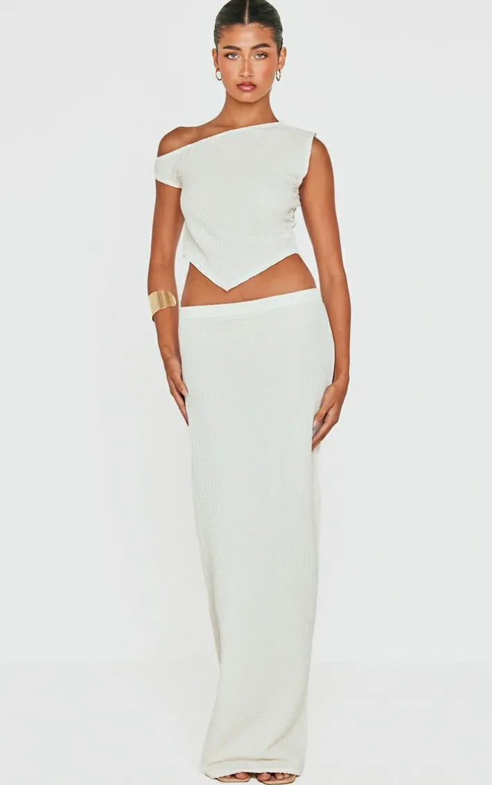 Cosy season has never looked as chic as with this beige textured asymmetric off the shoulder top. Made with a beige textured fabric and an asymmetric off the shoulder design, it’s a chilled out weekend essential. Complete the look with the matching skirt, heels and a gold bangle and you’re ready for whatever the day brings.