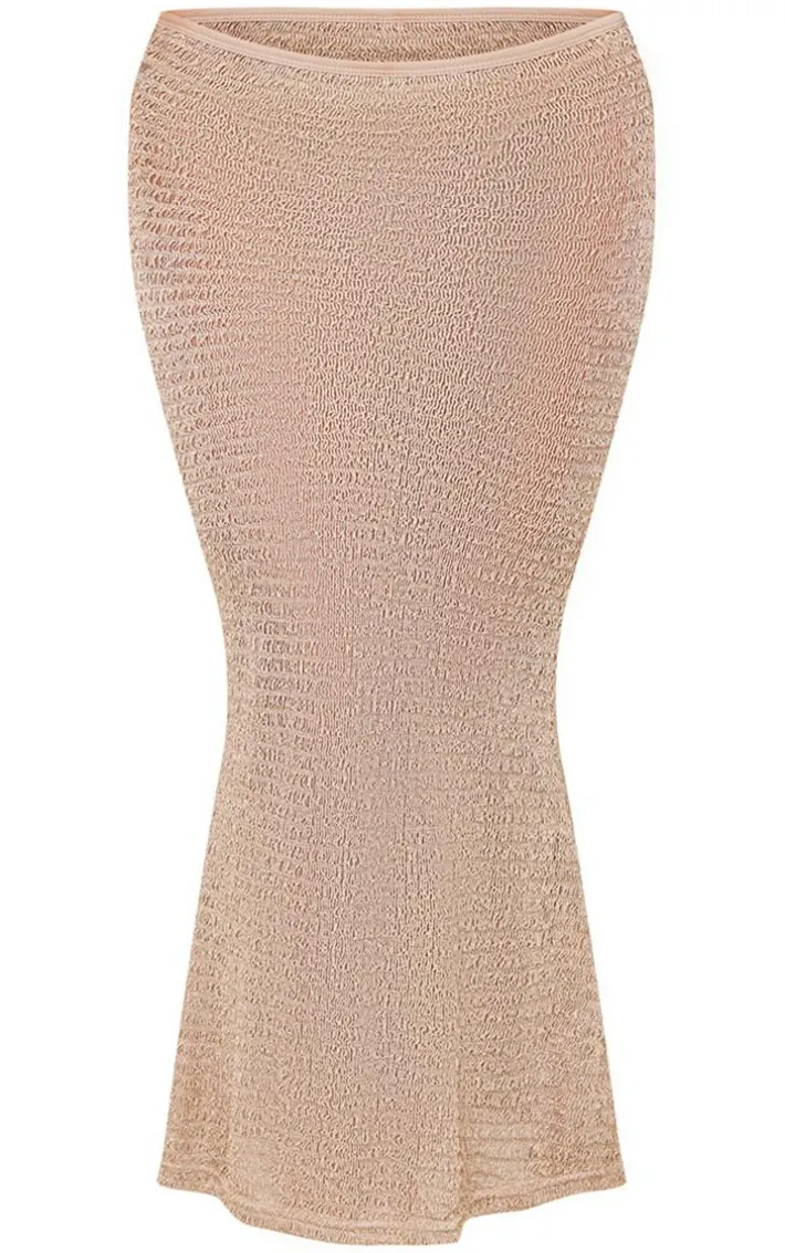 Channel the perfect poolside ‘fit with this beige textured fishtail beach maxi skirt. Brought to you in a beige hue textured material with a fishtail design and a flattering maxi fit, what more could you ask for? Style this beach skirt seamlessly with the matching bikini, gold accessories and oversized shades for a look that is sure to have all eyes on you on your next vacay.