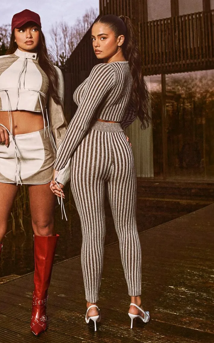 We are loving neutral hues this season and we know these beige two tone chunky knit leggings are sure to catch your eye. Brought to you in a beige two tone chunky knit material with a figure-flattering fit, what more could you want? For a seriously comfy but chic combo, style these leggings with the matching crop sweater and court heels to complete the look.