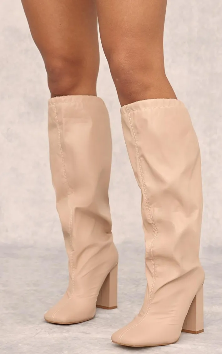 Take your outfit of the day to new heights with these beige wide fit PU square toe knee high block heel toggle boots. They’re made using a beige PU material with a block heel and a toggle tie detail, we’re seriously in love. Pair with your fave new season fit for a look everyone will be asking about.