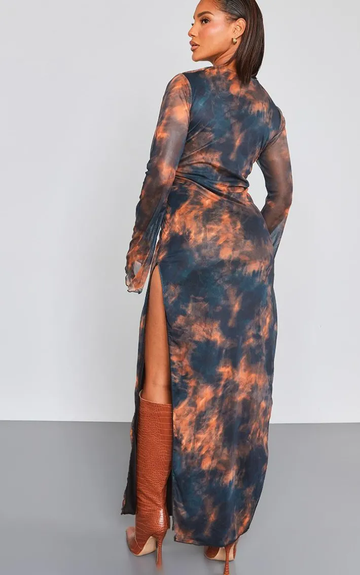 Take your look to new heights with this black abstract print mesh flared sleeve midaxi dress. This dress is brought to you in a black abstract mesh print material with flared sleeves and a midaxi length, what’s not to love? This mdiaxi dress is here to have heads turn for all the right reasons. Style effortlessly with high heels and accessories for a look that wont let you down.