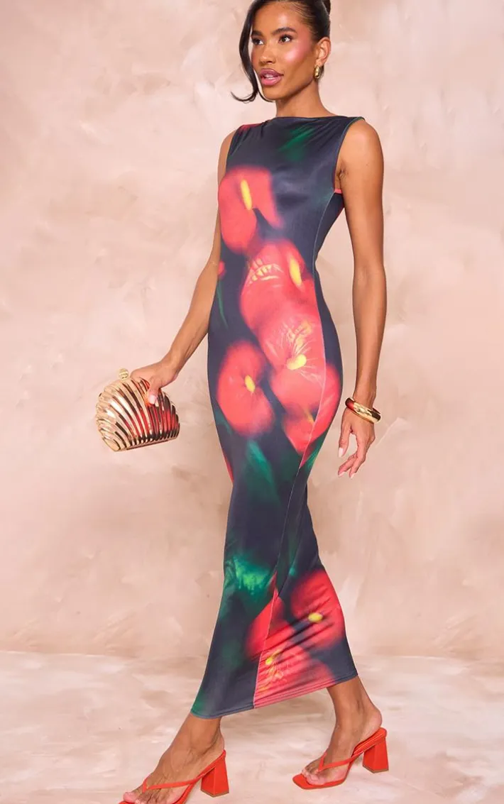 Make a serious style statement in this black abstract soft touch sleeveless maxi dress. Brought to you in a black soft touch material with an abstract print and a sleeveless design, how can you go wrong? Seriously chic and in a figure-flattering maxi fit, you are guaranteed to steal all the stares in this black dress. Just add heels and accessories to complete the look.