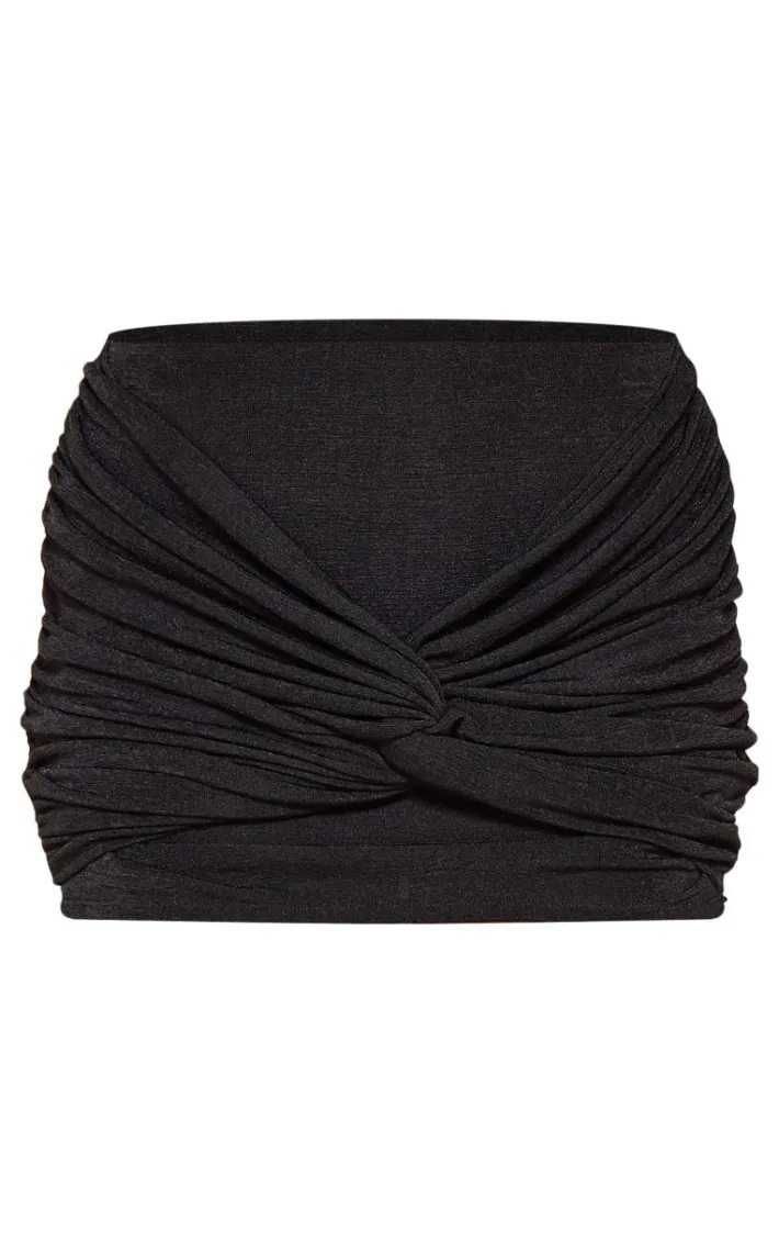 Make this black acetate slinky twist front micro mini skirt a staple in your new season wardrobe. Brought to you in a black acetate slinky material with a twist front design and a micro mini fit, how can you resist? Style this micro mini skirt with a crop top and heels for a look that won’t go unnoticed this weekend.