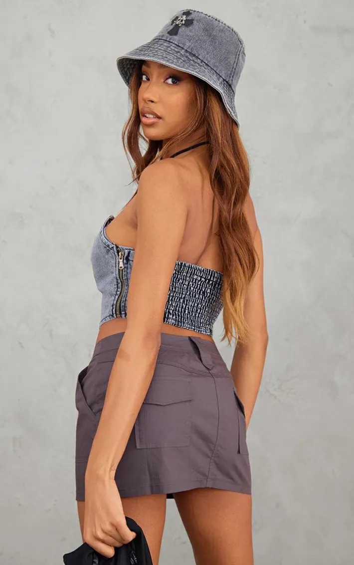 Take your weekend wardrobe to the next level with this black acid wash seam front bandeau denim corset. Brought to you in a black acid denim wash material with a seam front and a bandeau design, how could you resist?This corset will banish any what-to-wear dilemmas. Pair effortlessly with the matching skirt, high heels and accessories for a next-level look.