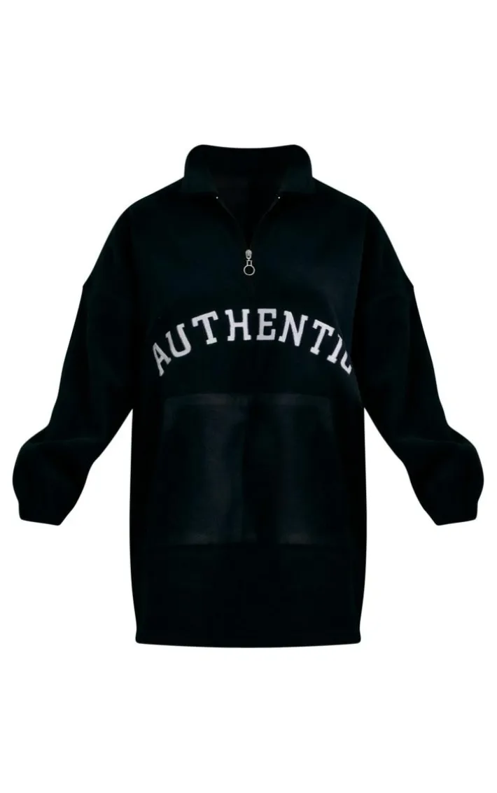 This sweater dress is simply a must-have for the new season and beyond. Featuring a black fleece material with a graphic print, a half-zip fastening and a relaxed fit, we are in love. For that perfect on-the-go look, wear with comfy boots, bold accessories and a shoulder to complete.