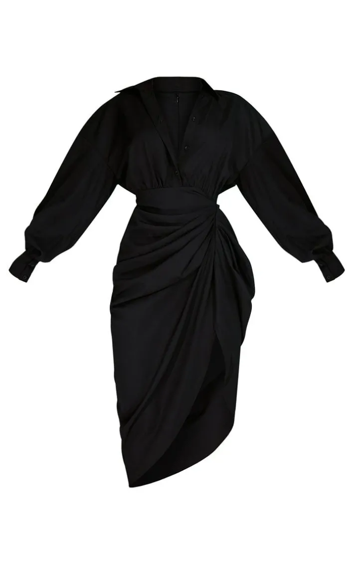 This dress is sure to be at the top of your new season hit list. Featuring a black material with a gathered skirt design and balloon sleeves. Style with slip-on heels and your fave accessories for a look we’re crushing on.
