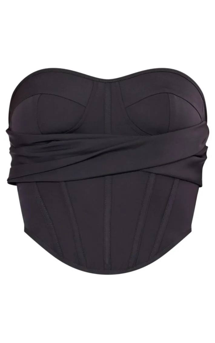 Look all kinds of chic in this black bandage draped detail corset. Brought to you in a black bandage material with a draped design and a figure-flattering corset fit, how can you not fall in love? Style this black corset with a satin skirt and heels for a look they won’t be able to take their eyes off.