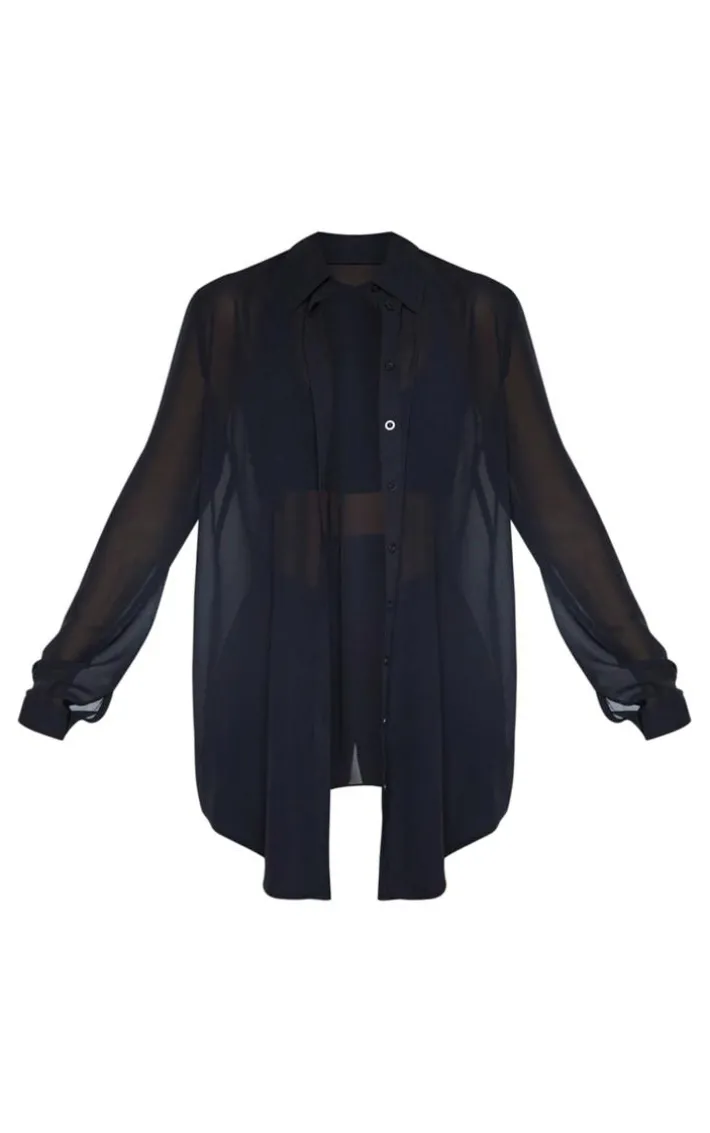 Nail the ultimate beach babe look with this beach shirt. Featuring a black hue with an oversized fit, wear over a black bikini with the matching pants and wedges for a look we’re totally obsessing over.