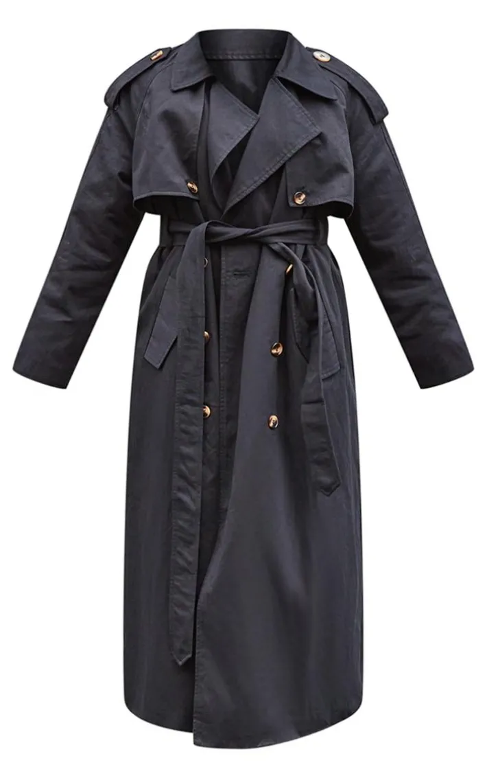 Level up your everyday style with this must-have black belted double breasted trench coat doll. Made using a black hue material with a double breasted design and a belt fastening for some major styling points, what more could you ask for? We know you won’t be able to resist this eyecatching women’s coat. Wear with a Sweatshirt, leggings, fresh sneakers and gold hue accessories for a staple combo that will get you noticed.