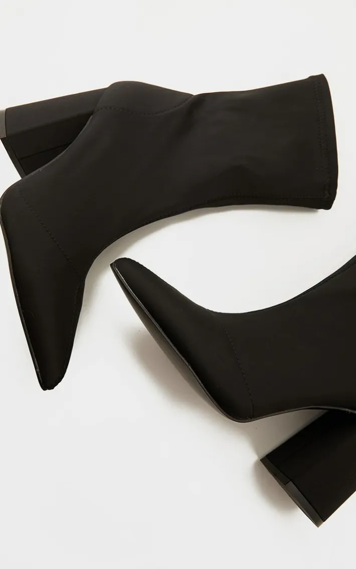 Black Block Heeled Point Toe Sock Boot
