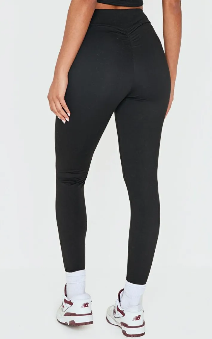 These black brushed sculpt ruched bum high waist sport leggings are perfect for gym sessions and beyond. Made using a black brushed material with ruched bum detailing and a high-waisted fit, we’re in love. Wear with the matching top sneakers and a jersey headband to complete the look.