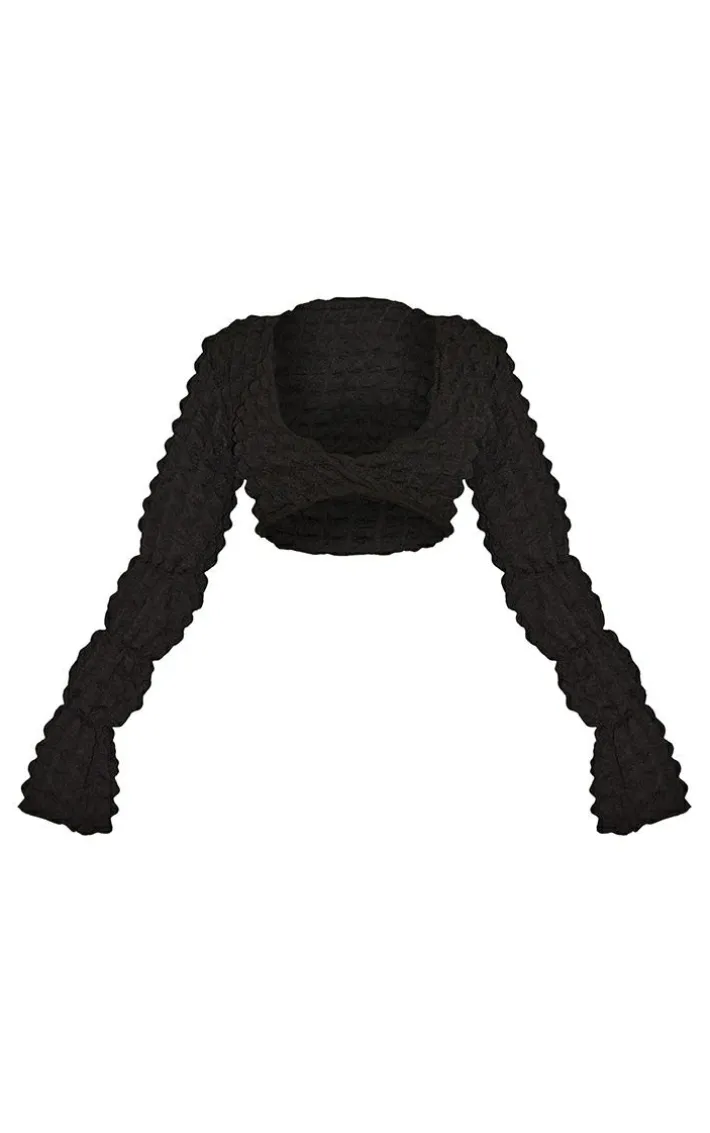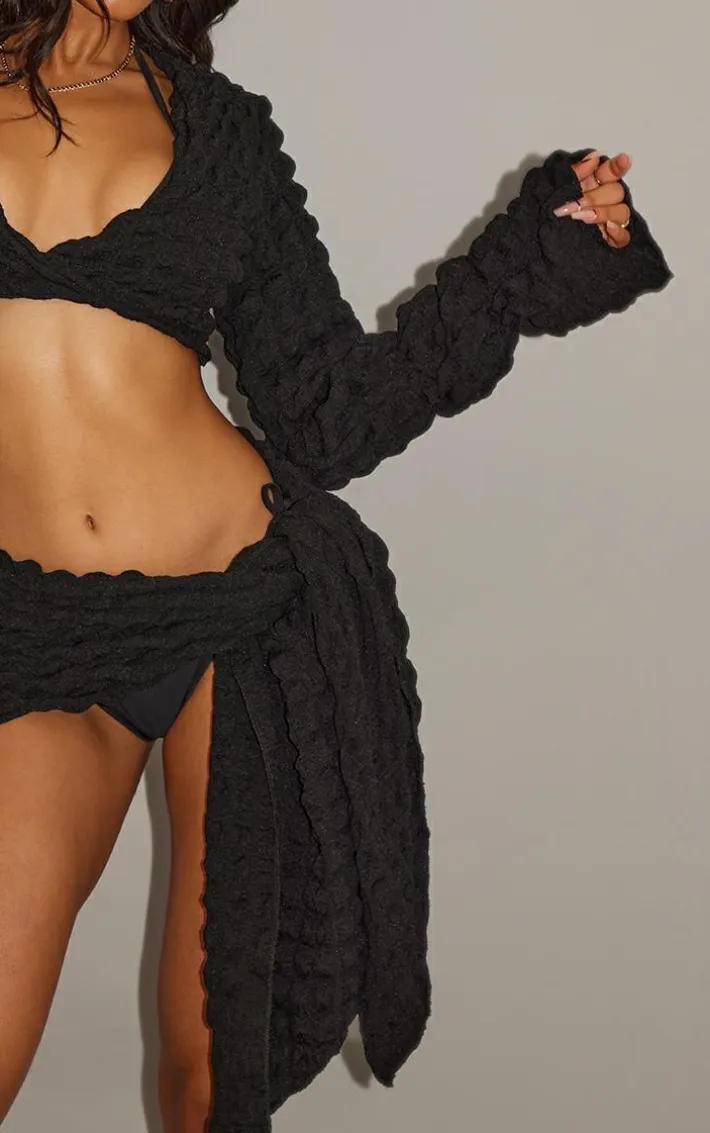 If you are in need of a new vacay staple then this black bubble textured long sleeve beach top has got you covered. It is brought to you in a black bubble textured material with long sleeves and a flattering fit, we are beyond obsessed. Be sure to steal all the stares and earn all the compliments in this beach top. Wear with your fave bikini and gold hoops for a beach-ready finish.