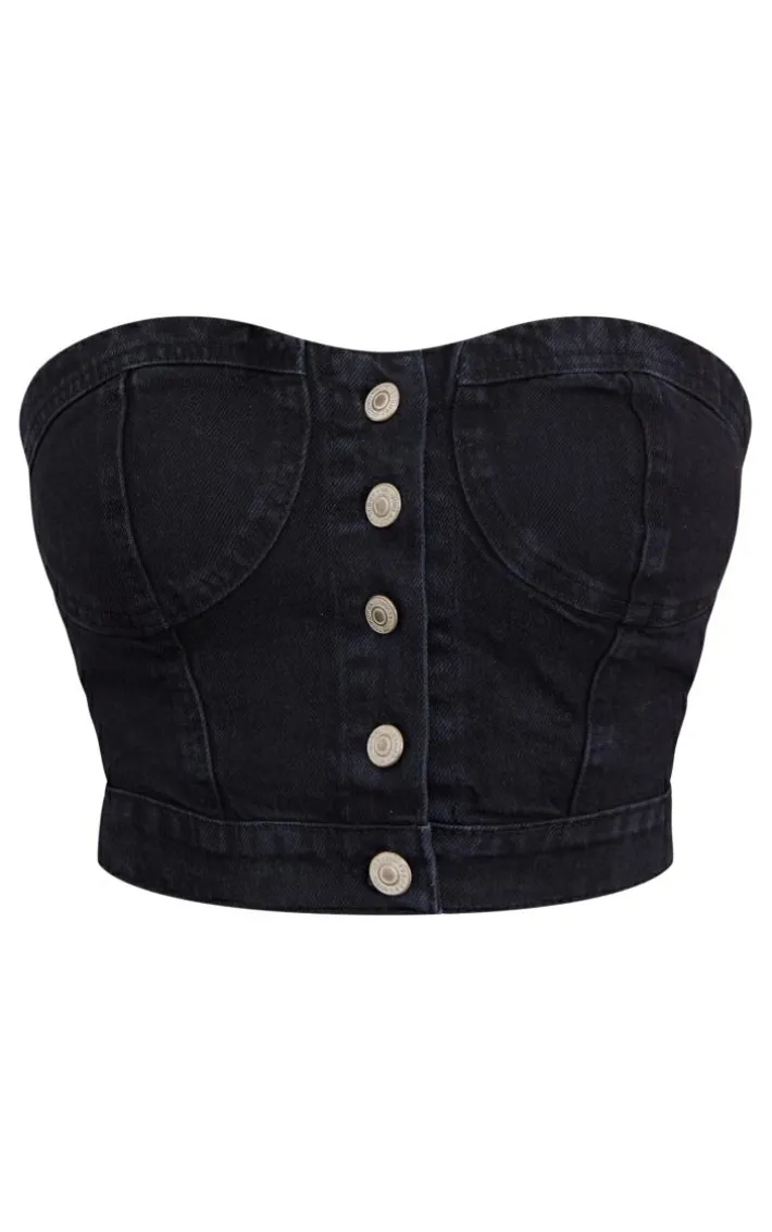 Make a statement this season with this black button through denim top. This top is made from a black denim material for all the grunge vibes we are loving this season. With a button up detail, what more could you want ? Team this unreal top with a minis kirt and some knee high boots to take the look from 0-100, it’s a yes from us.