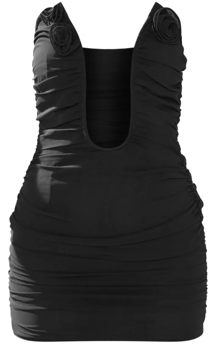 Make them stop and stare in this black chiffon rose trim deep V bar bandeau bodycon dress. This dress is made from a black chiffon material with a rose trim, you are sure to nail major trends this season. This bodycon dress has a deep V bar detail giving you a flattering fit like no other. Team with some of you highest heels and fave accessories to finish off the look.