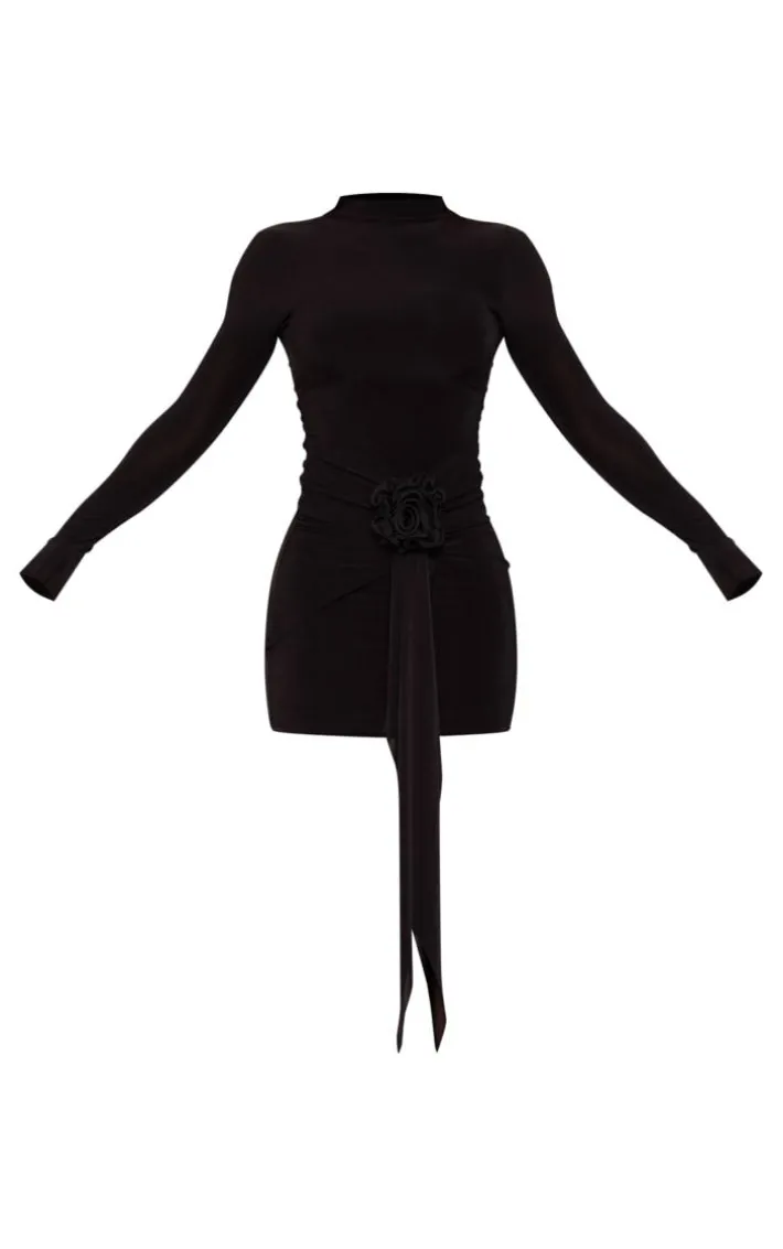 Every needs a little black dress in their wardrobe and this black corsage drape detail long sleeve bodycon dress is here to solve all your weekend styling dilemmas. It is made using a black material with corsage drape detail and long sleeves, you’ll be adding this bodycon dress straight to your basket. Pair it with your fave heels and simple accessories for a dreamy date night look.
