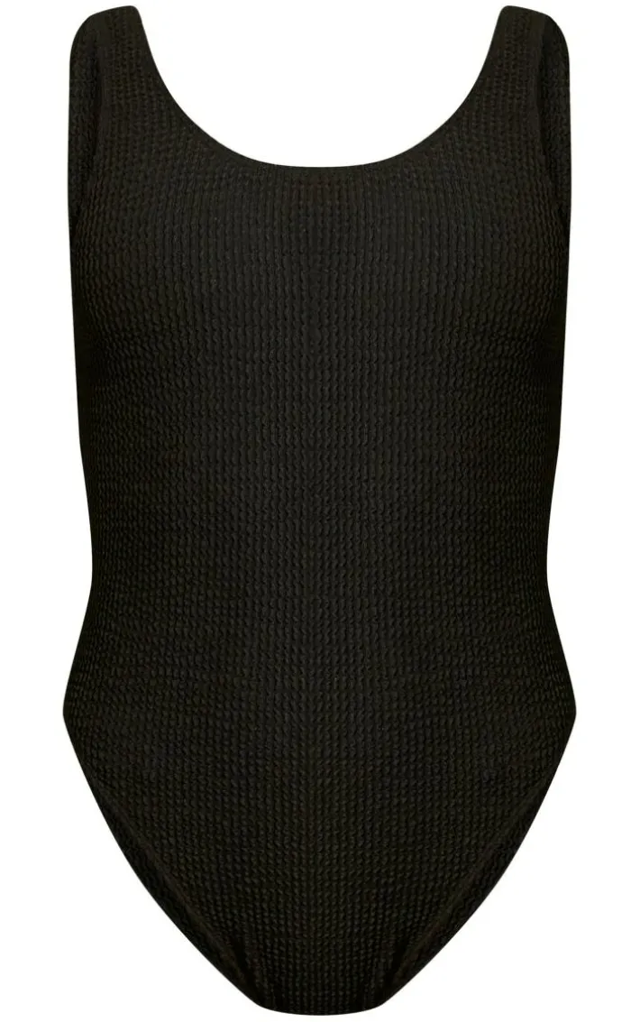 A vacay is calling your name and this swimsuit is on our hit list. Featuring a black crinkle material with a low scoop back and a figure-flattering fit. Team with some slides and sunnies for a look that won’t go unnoticed.