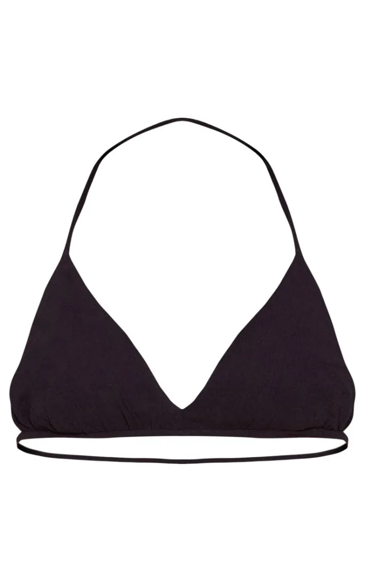 Say hello to your new season staple with this black crinkle textured strappy bralette. Brought to you in a black crinkle textured material with a strappy design, how could you say no? Style effortlessly with the matching skirt, sandals and accessories for a look that will turn heads for all the right reasons.