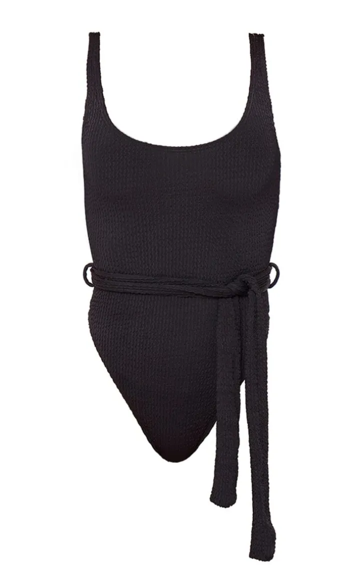 be the best dressed while poolside with this black crinkle tie waist detail swimsuit. Brought to you in a black crinkle material with a tie waist detail that will have you showing off your shape in all the right places. Thus swimsuit is all you need for those beach days and beyond. Team with your go-to accessories to elevate the look even further.