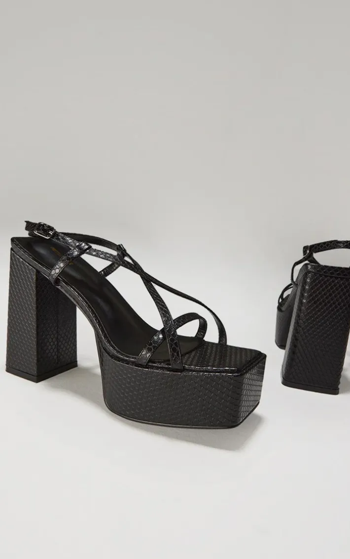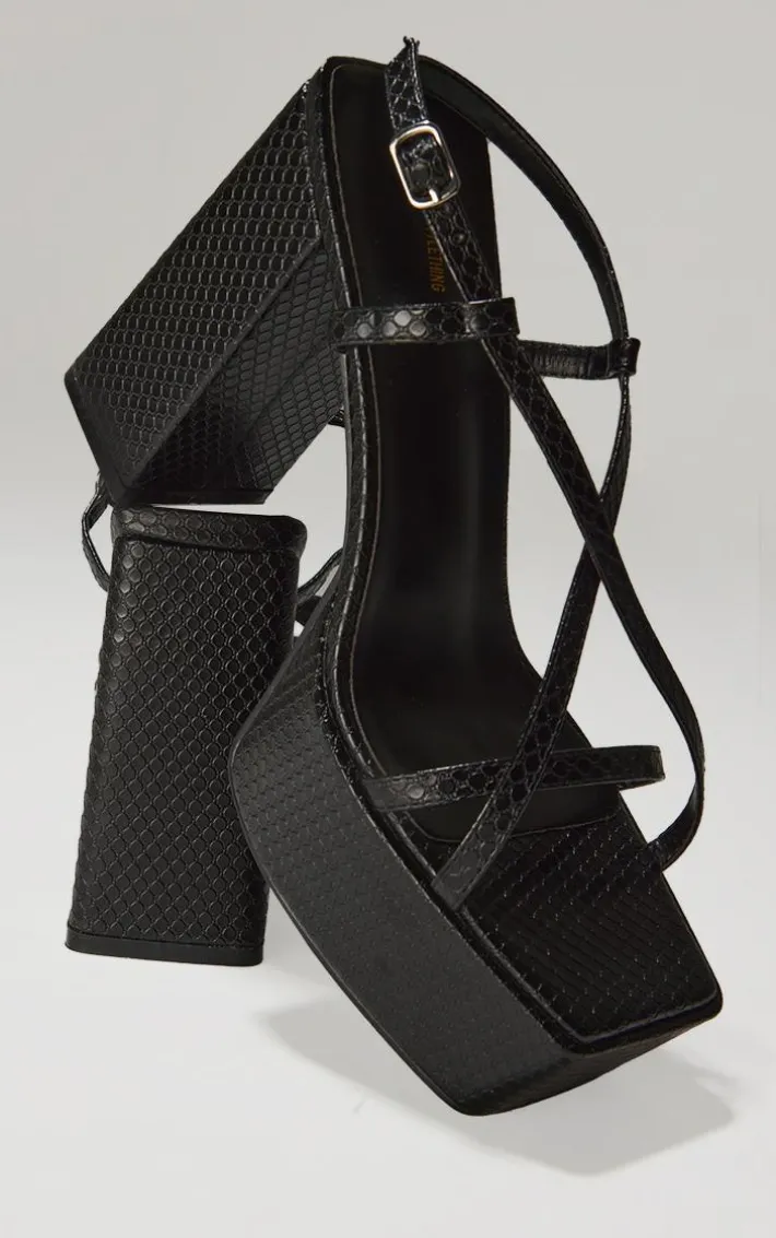Don’t compromise your shoe game with these black croc PU square toe cross strap platform heeled sandals. Brought to you in a black croc PU material with a square toe design and a cross strap detailing, we are obsessed. Team these platform heeled sandals with a statement look and your go-to accessories for a look that will be your new go-to.