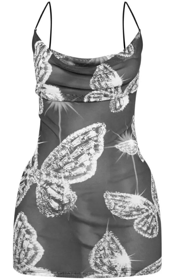 Get your glam on with this black diamante butterfly print mesh bodycon dress. This dress is brought to you in a black mesh material with a diamante butterfly print and a figure-hugging fit, what’s not to love? You’ll be setting trends wherever you step foot in this show-stopping dress. Just add your dreamy high heels and accessories for a look that we can’t stop crushing on.