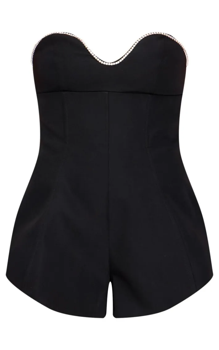 Step out in style at your next occasion with this black diamante detail bandeau structured romper. Brought to you in a chic black shade, with a statement diamante detail and bandeau neckline, you really can’t go wrong. With its flattering structured design, reach for this and a pair of heels for a look like no other.