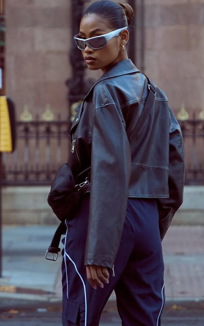 The new season is calling and you should answer with this biker jacket. Featuring a black distressed material with a belt detail and an oversized fit. Dress up your outfit of the day with this jacket and everyday accessories for a complete look.