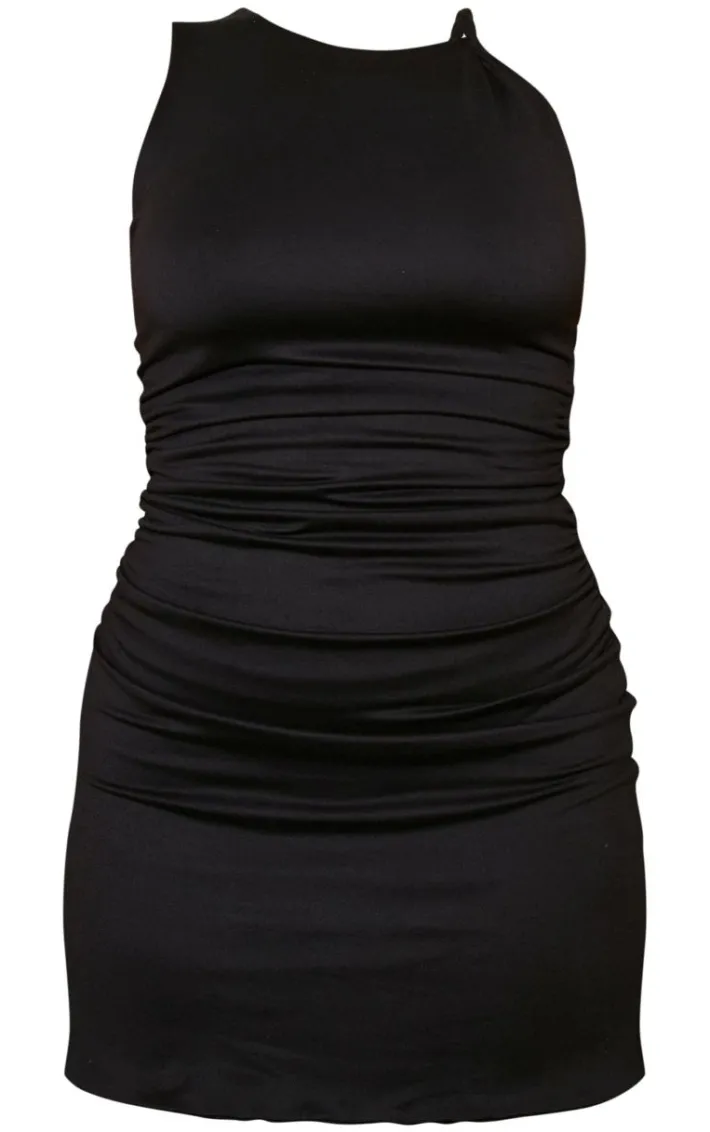 This black double contour twist strap ruched bodycon dress is here to banish any of your what to wear dilemmas. Brought to you in a black material with a double contour design and a twist strap detail, we can’t get enough. From start to finish this ruched bodycon dress will have you looking totally on-trend. For a next-level look simply style with a pair of clear heels and gold accessories. It’s a yes from us.