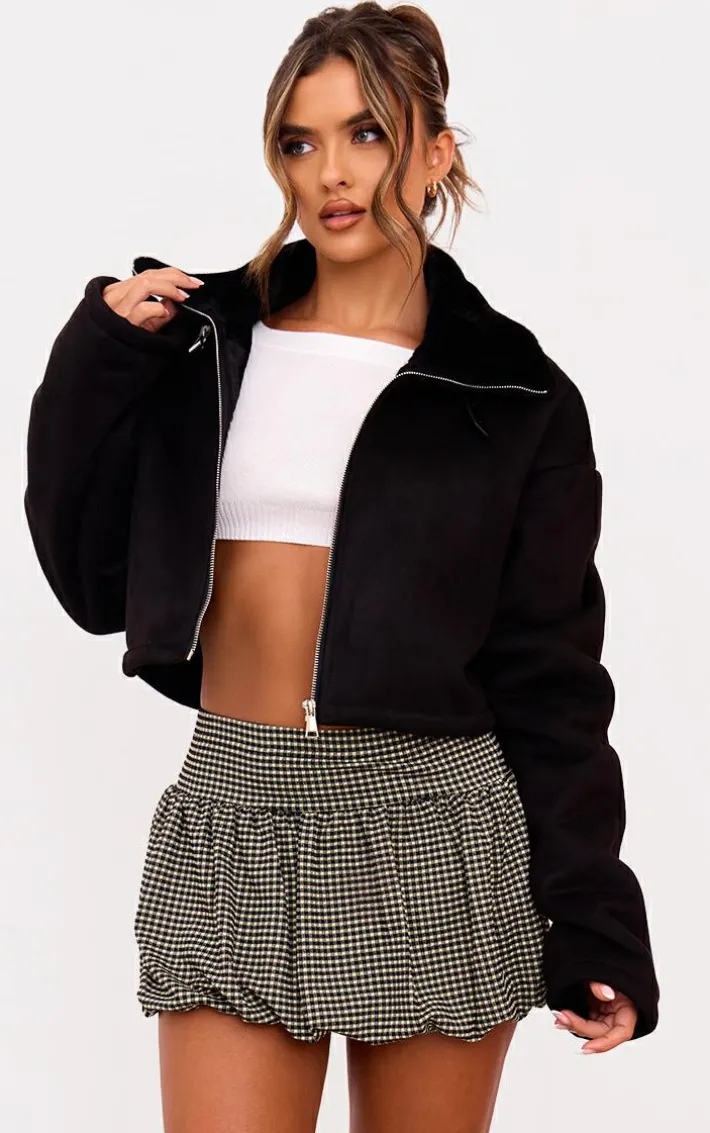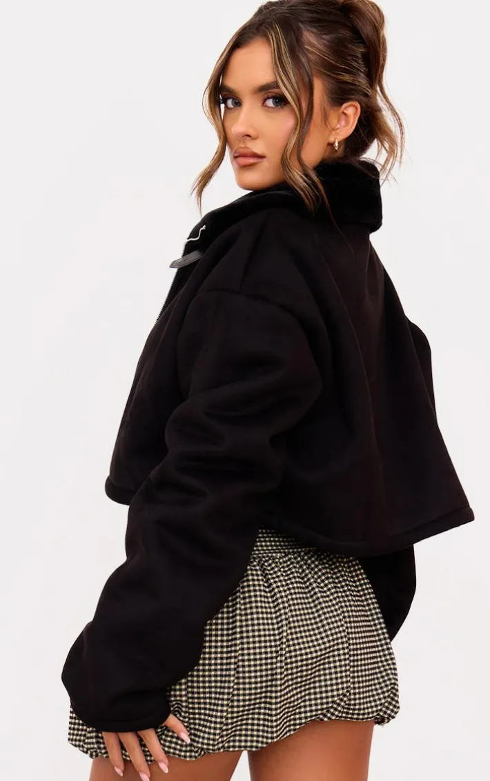 Tap into your confident side this season with this black dropped shoulder cropped fur contrast jacket. Brought to you in a black faux fur material with a dropped shoulder design and a cropped length, you won’t be able to resist. Team this cropped jacket with a mini skirt and a cropped tee for a look everyone is obsessing over.