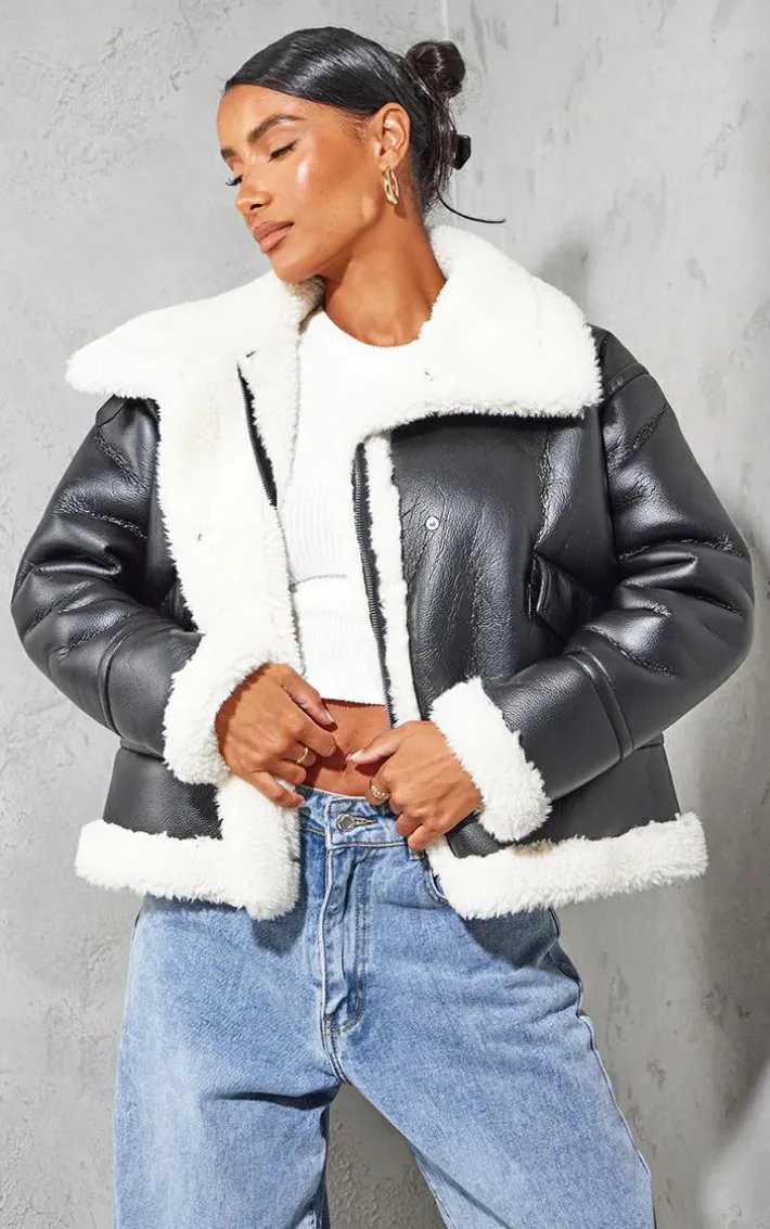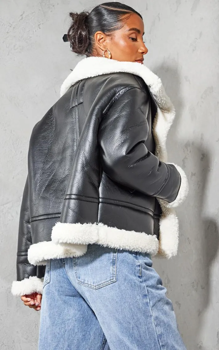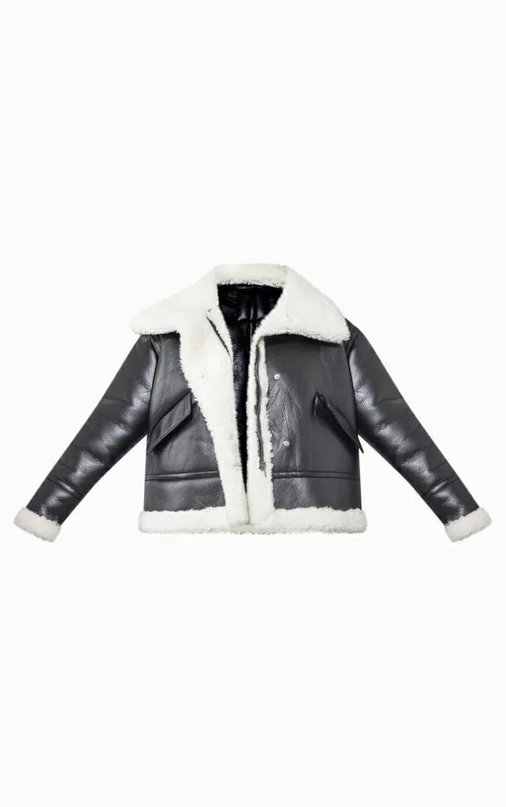 Your new season style saviour has just entered the chat. Featuring a black faux leather material with a faux fur trim detail and an aviator design, what’s not to love? Layer over your outfit of the day for some extra cosy vibes.