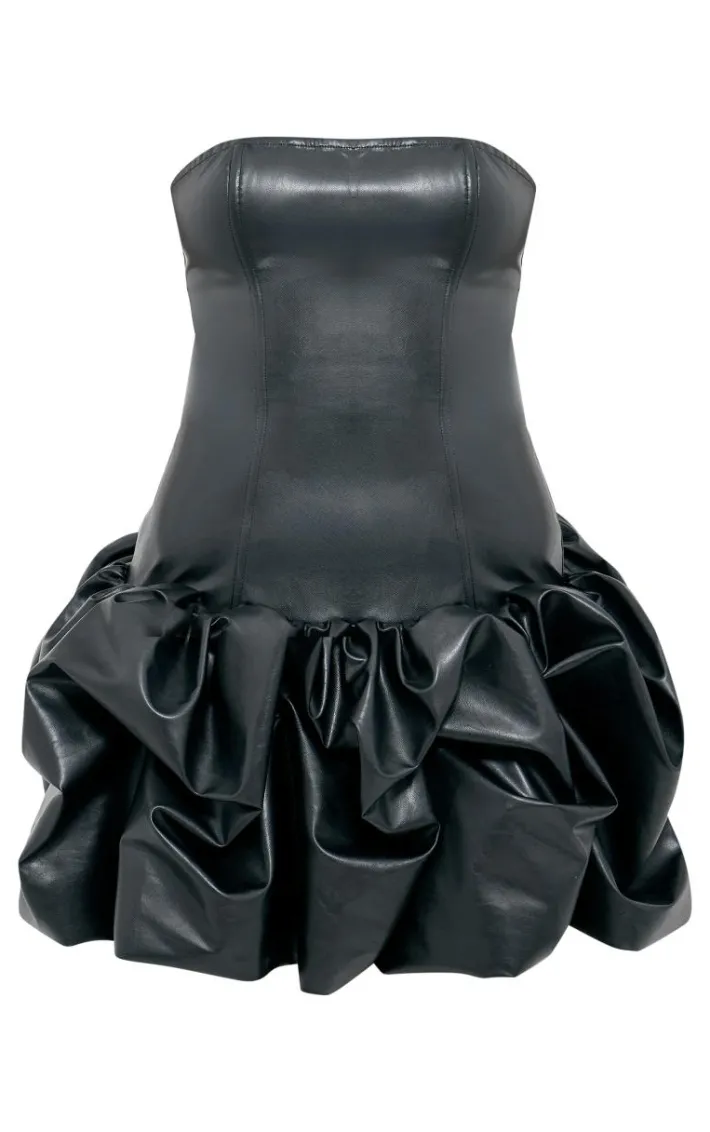 Tap into your feminine side with this black faux leather bandeau puffball mini dress. Brought to you in a black faux leather material with a bandeau design and a puffball detail, what more could you want? Team this unreal mini dress with your go-to mule heels and some gold hoops to elevate the look to new heights.
