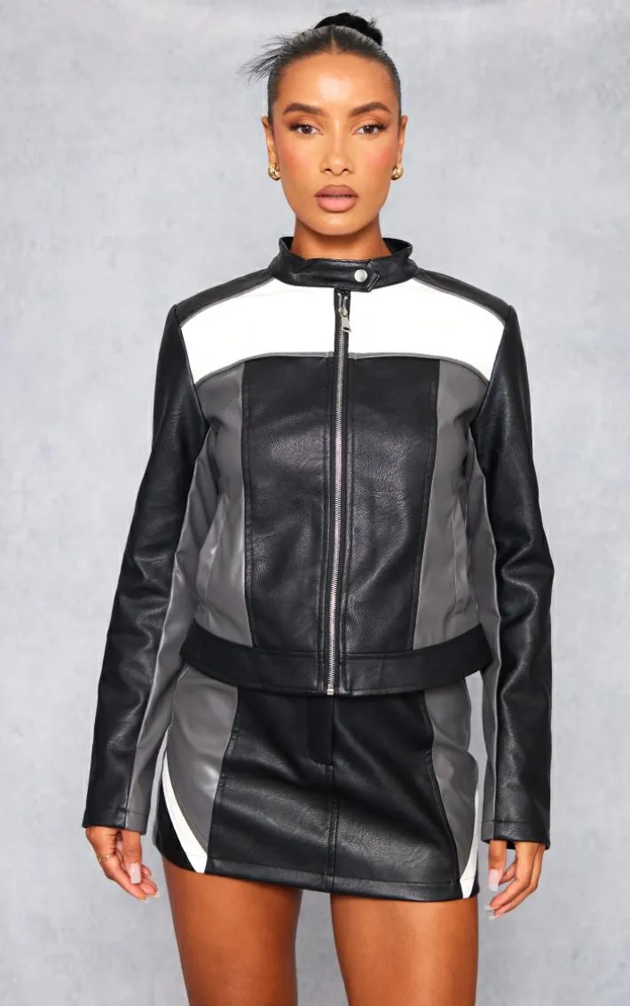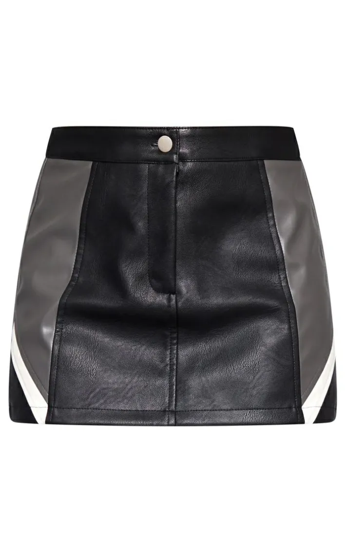 When your weekend look calls for a little extra attitude, we’ve got you covered with this black faux leather contrast panel mini skirt. Brought to you in a black hue faux leather material with a contrasting panel design and a mini fit, we just can’t get enough. Style this faux leather skirt with the matching jacket, statement heeled boots and oversized sunglasses for a fierce weekend-worthy ‘fit to be remembered.