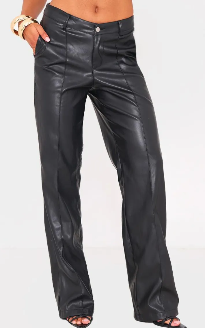 Take your weekend wardrobe to the next level with these bottoms. Featuring a black faux leather material with a dip waist and flared leg fit, we’re obsessed. Team these with a matching top and sky-high heels for a glam, Insta-worthy combo.