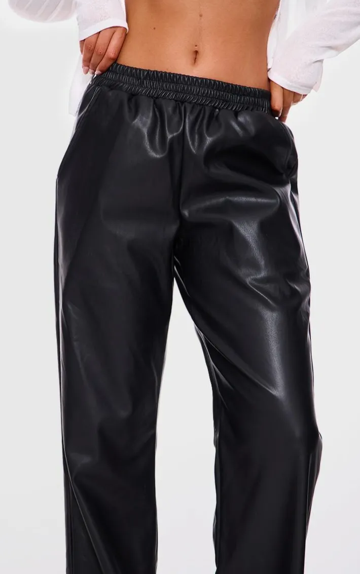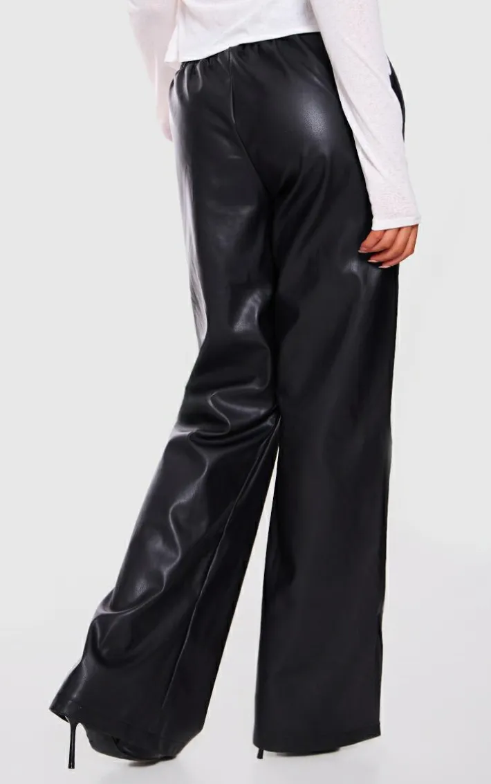 Add a little attitude to your new season wardrobe with this black faux leather elasticated waist straight leg pants, they’re the perfect piece to take your look from AM to PM. With a black faux leather material, an elasticated waist and a straight leg style, you’ll be adding these pants straight to your basket. Pair these faux leather pants, a crop top, slip-on heels and statement accessories for a chic, weekend-ready fit.